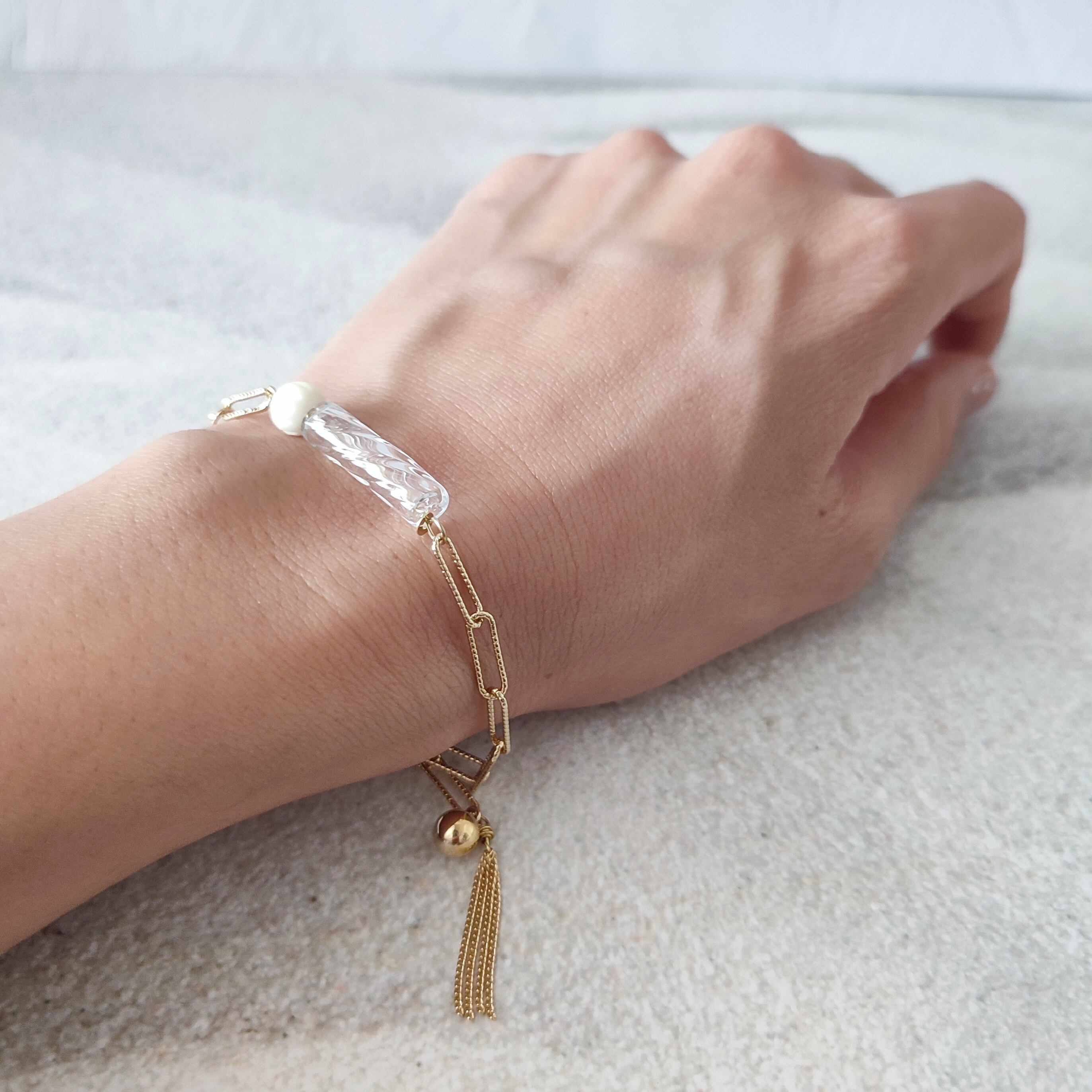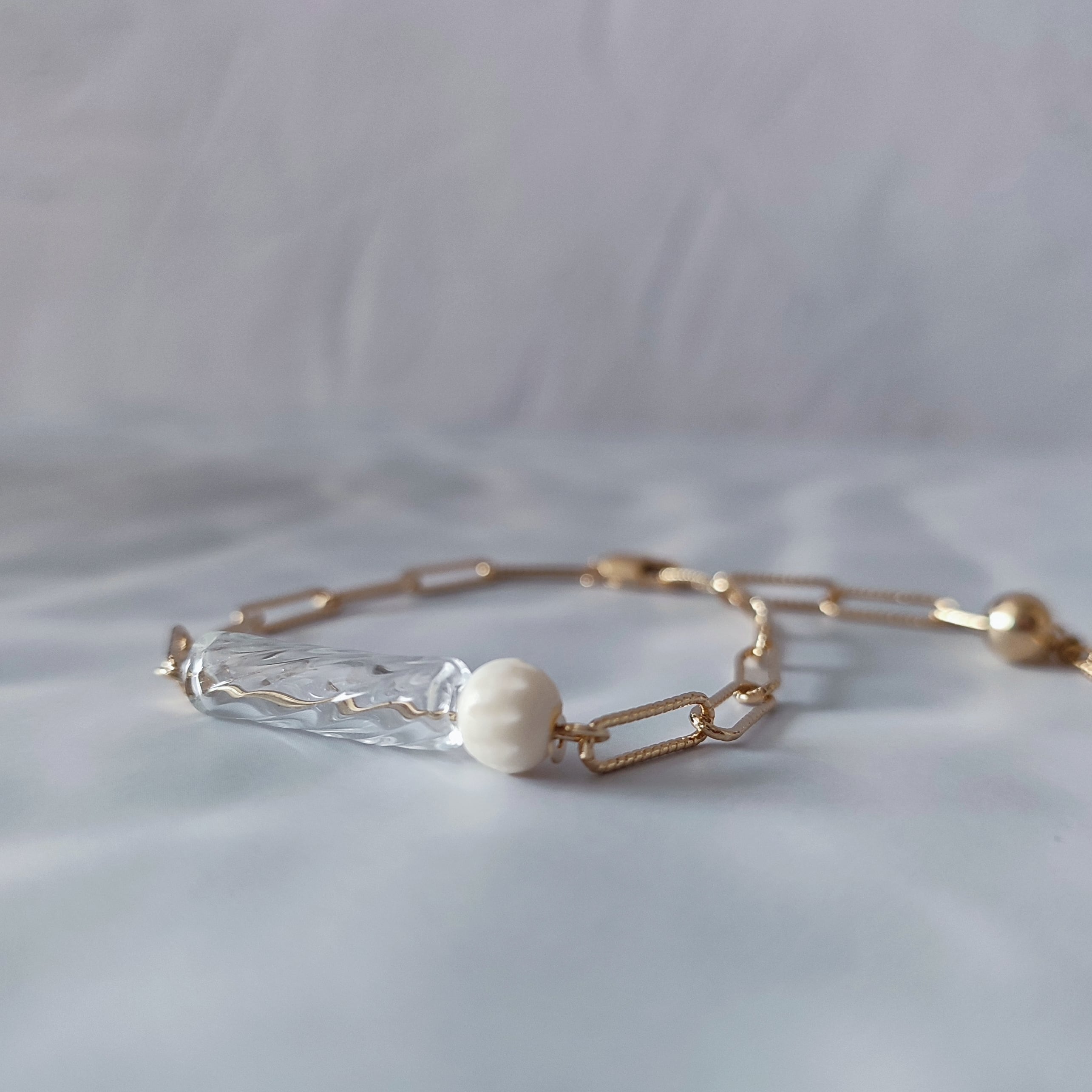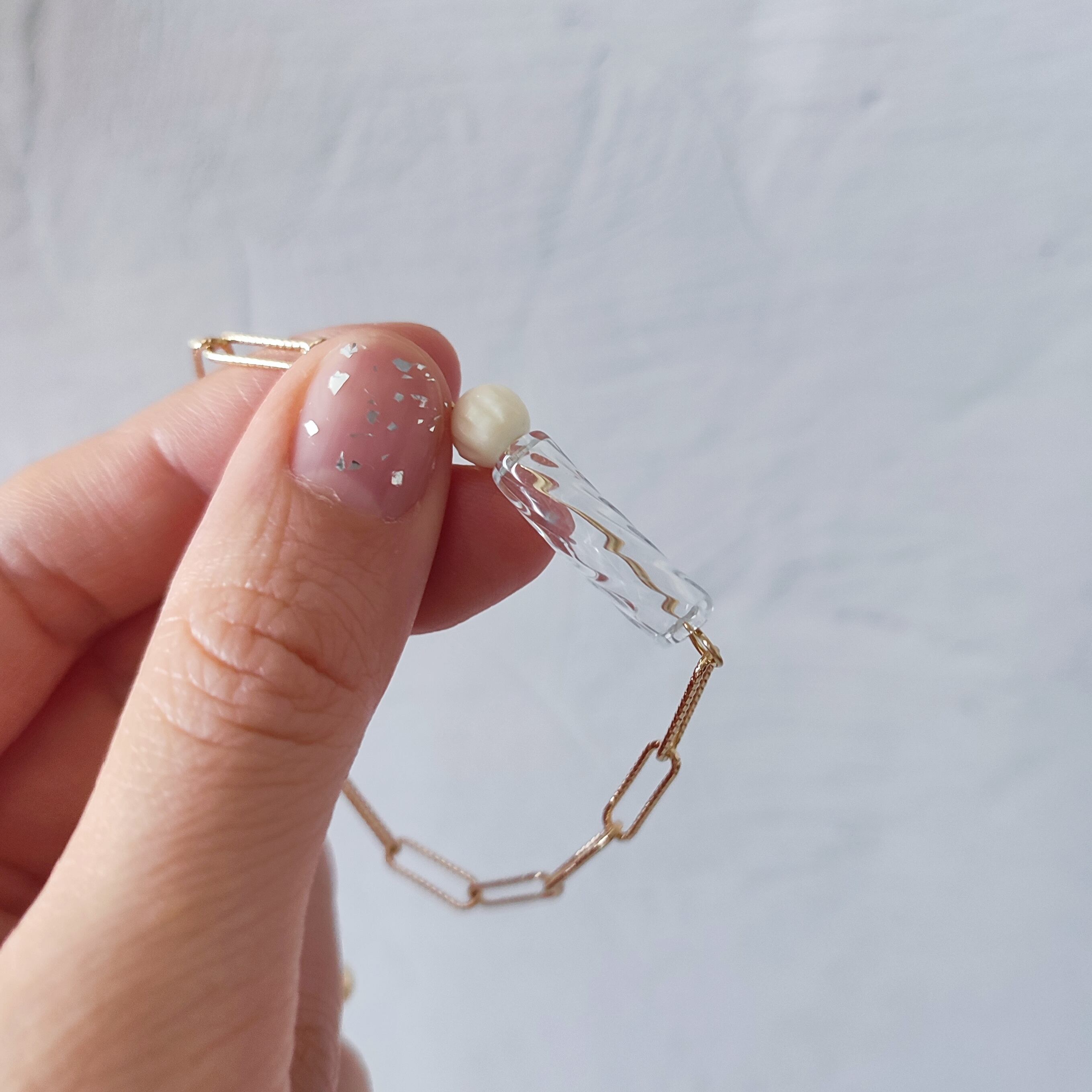 透き通るガラスの美しさが際立つ、チェーンブレスレットです。