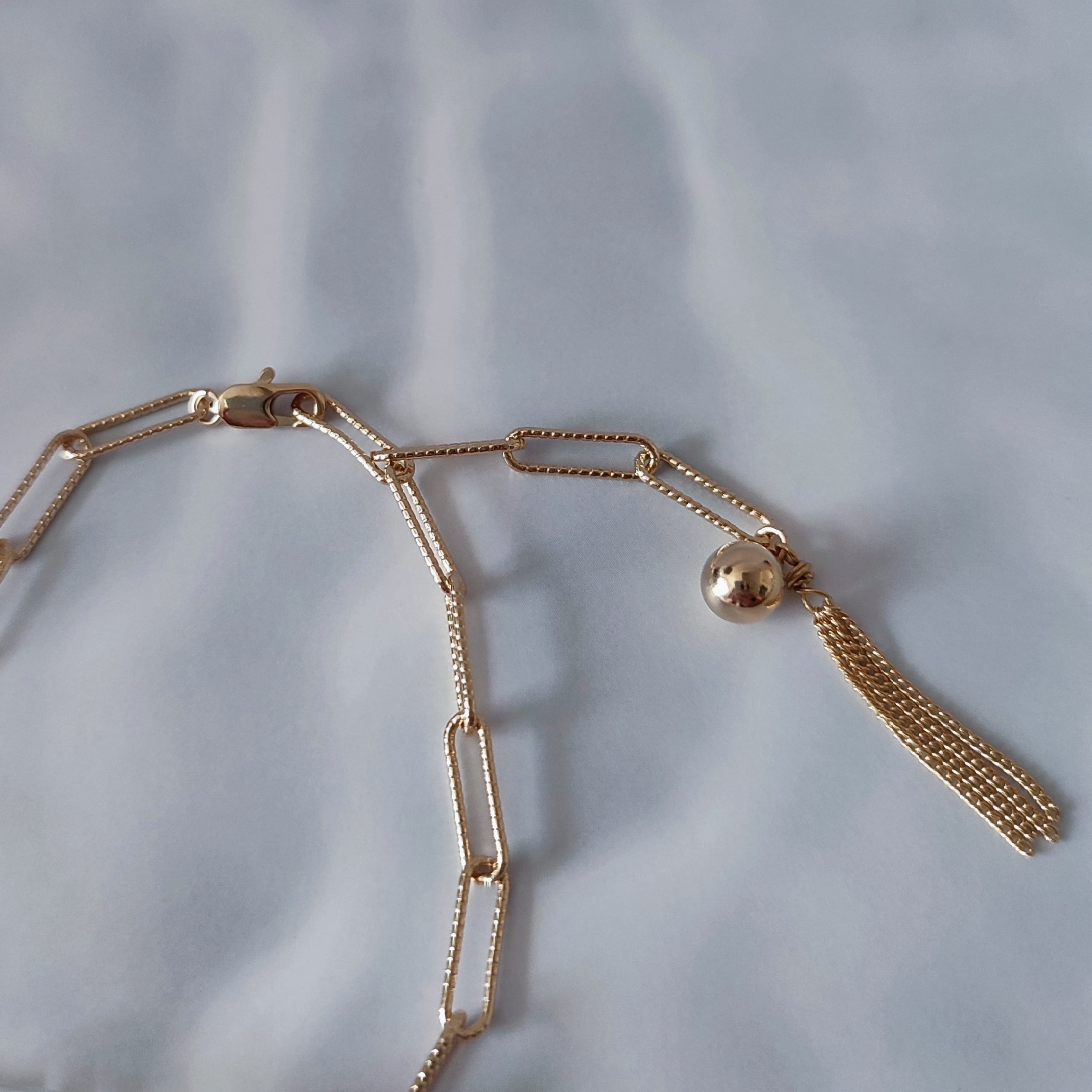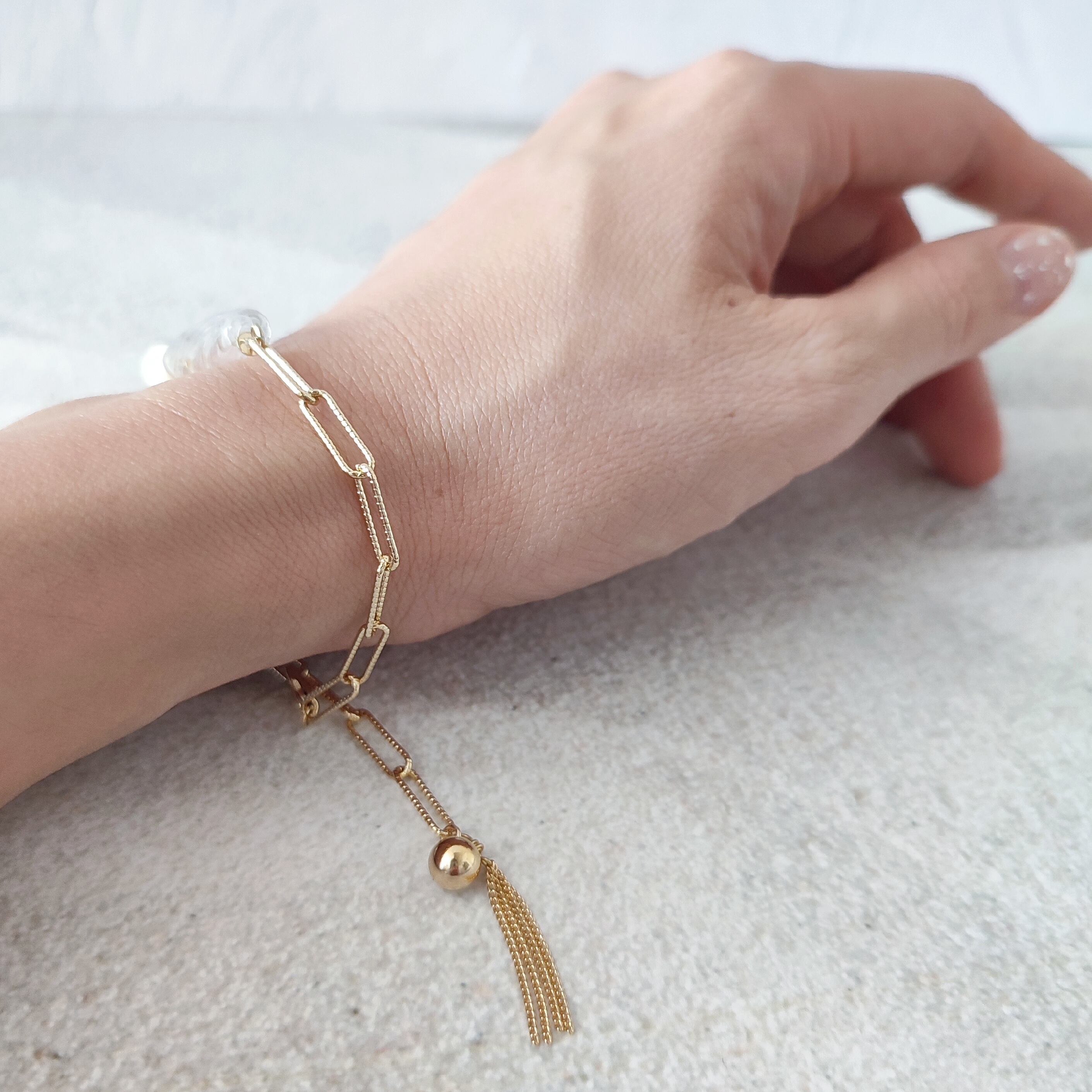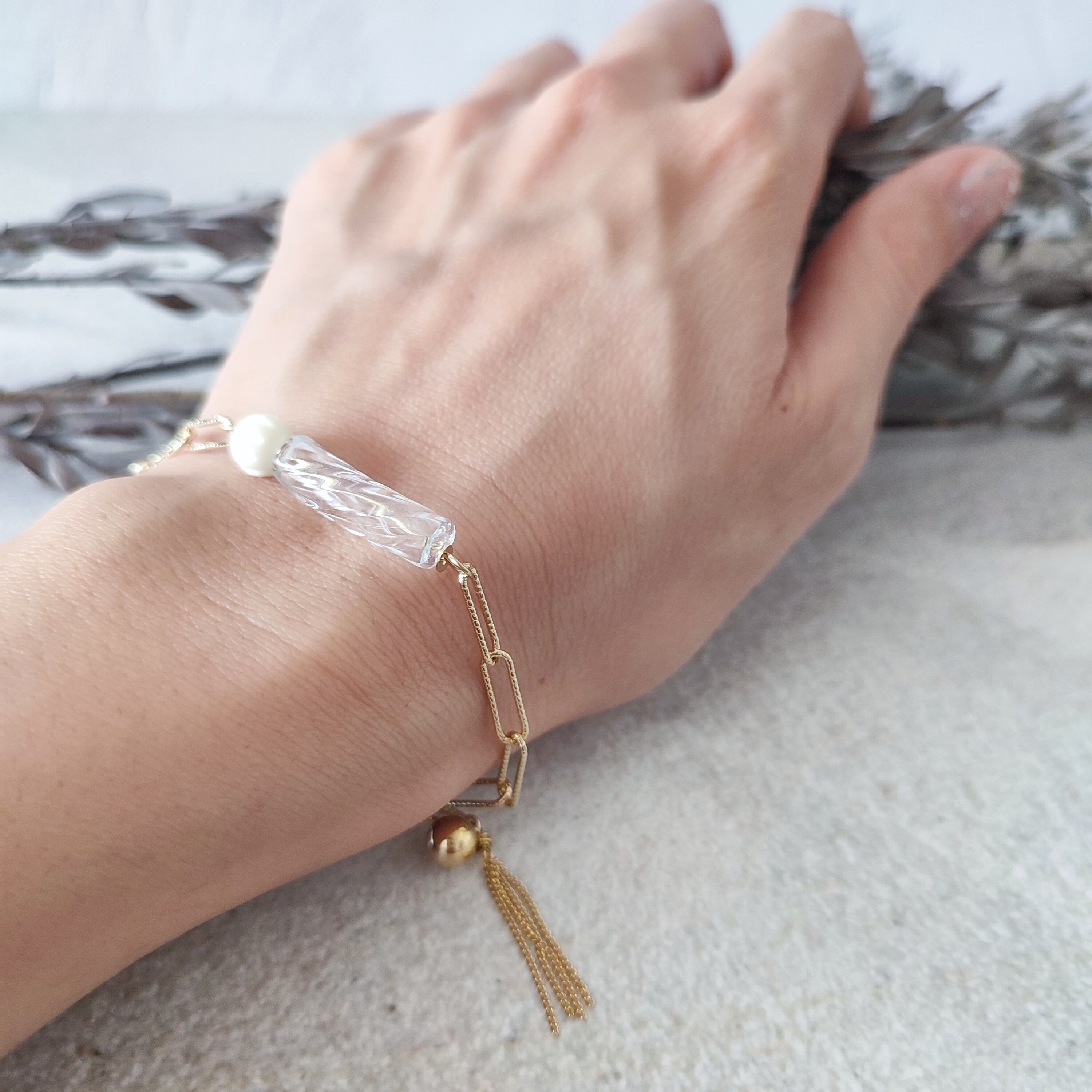 透き通るガラスの美しさが際立つ、チェーンブレスレットです。