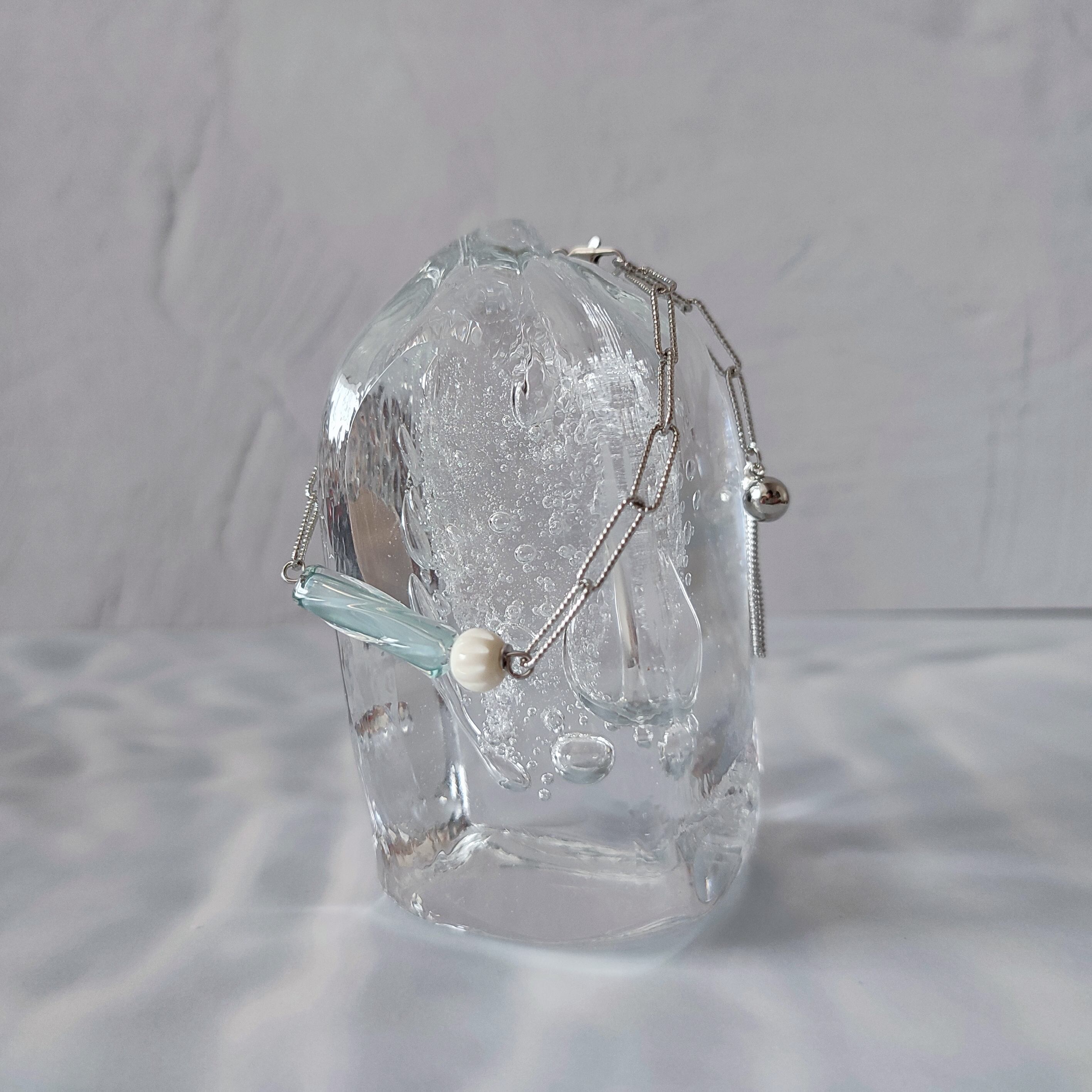 透き通るガラスの美しさが際立つ、チェーンブレスレットです。